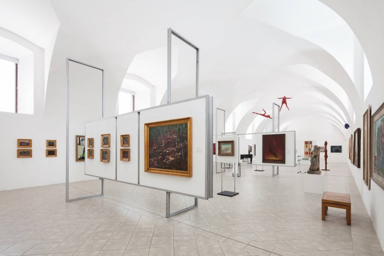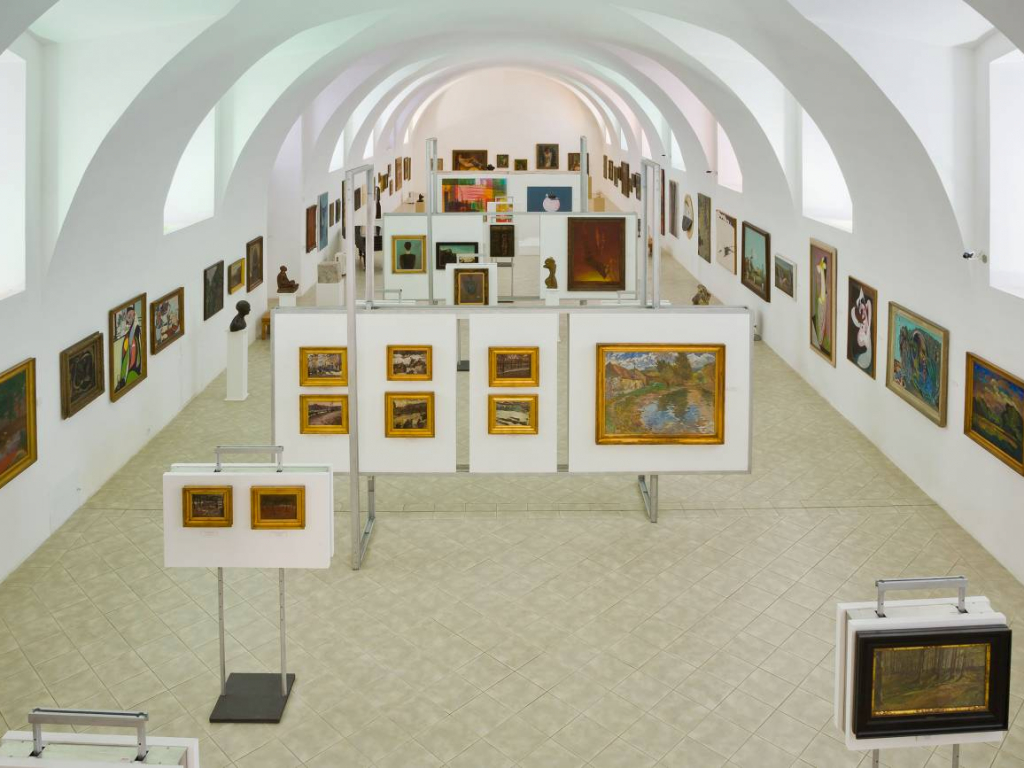 V hlavním sále je umístěn výběr z galerijních sbírek, který představuje ilustrativní průřez dějinami českého výtvarného umění 20. století. Počíná impresionismem a tvorbou modernistických autorů, pokračuje kubismem a avantgardními proudy přes informelní, geometrické a figurativní tendence šedesátých let a směřuje k současné tvorbě, která bývá prezentována nejen aktuálními výstavami, ale také rozličnými intervencemi. Po boku stálé expozice jsou v galerii pořádány tematické či monografické výstavy, zahrnující nejširší spektrum výtvarných aktivit.