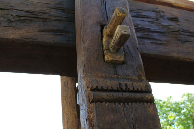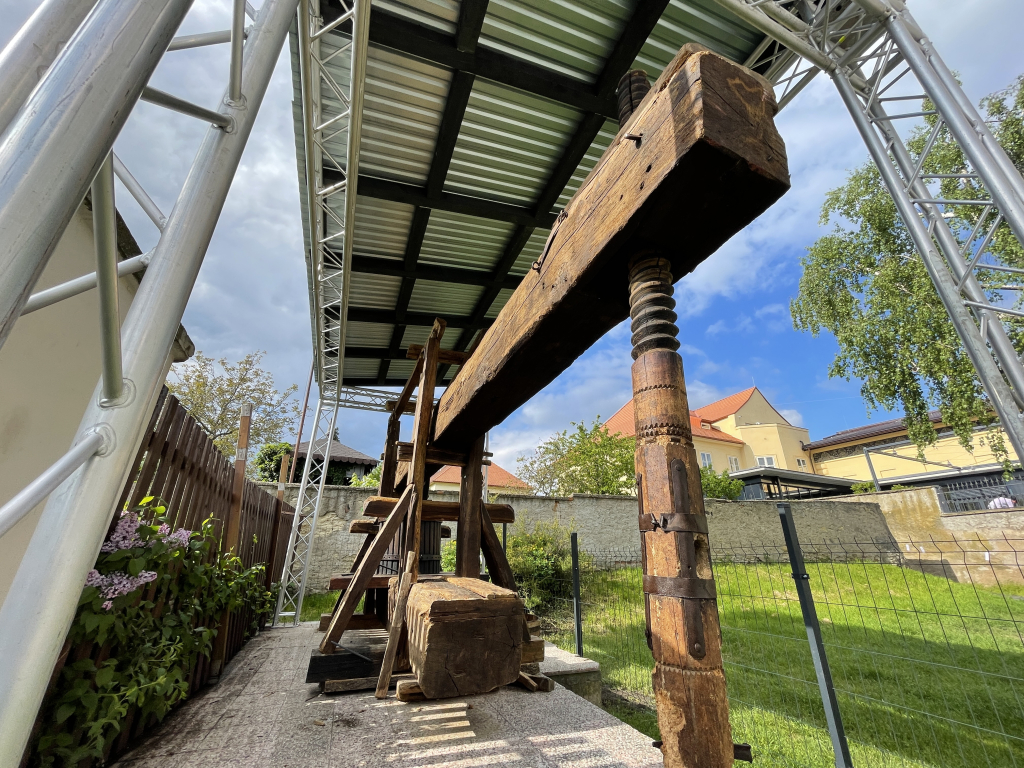 Historický lis na víno u věže Hlásky