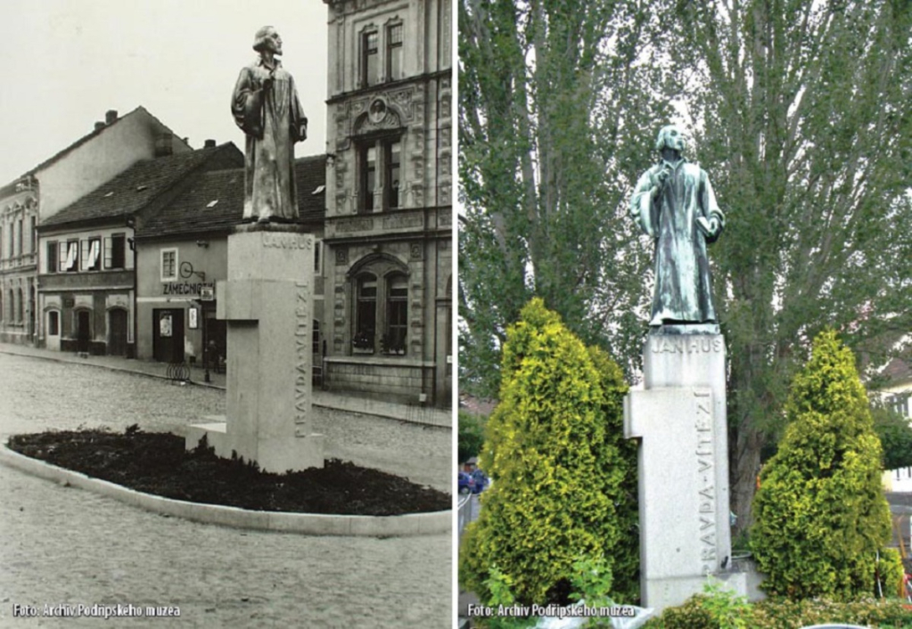 Její výtvarné zpracování bylo zadáno žáku Stanislava Suchardy, akademickému sochaři Rudolfu Březovi. Samotná plastika je odlita z bronzu a postavena na hranolovitě členěném žulovém soklu, jehož boční východní strana je osazena bronzovým reliéfem, znázorňujícím husitského kněze.