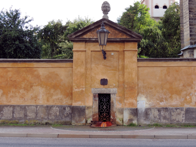 Pramen, jenž dal dle pověsti jméno městu Roudnice, obsahuje vysoké množství železa. Vyvěrá pod chrámem Narození Panny Marie. Lze jej nalézt při cestě vedoucí kolem ohradní zdi kostela.